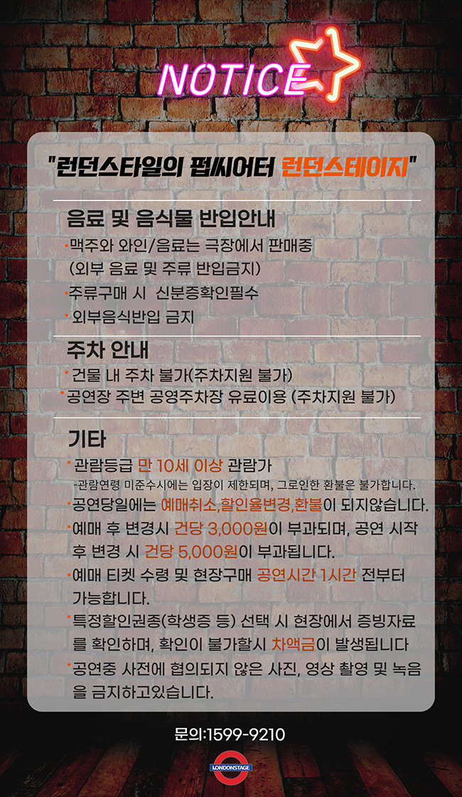 예매가능시간: 관람 10분 전까지 - 화~금 19:30 / 토 15:00, 18:00 / 일 15:00 - 매주 월요일 공연없음