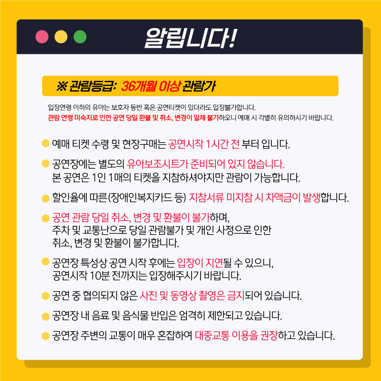 예매가능시간: 관람 10분 전까지 - 목,금: 19:30/ 토요일 15:00, 18:00 (4회공연)