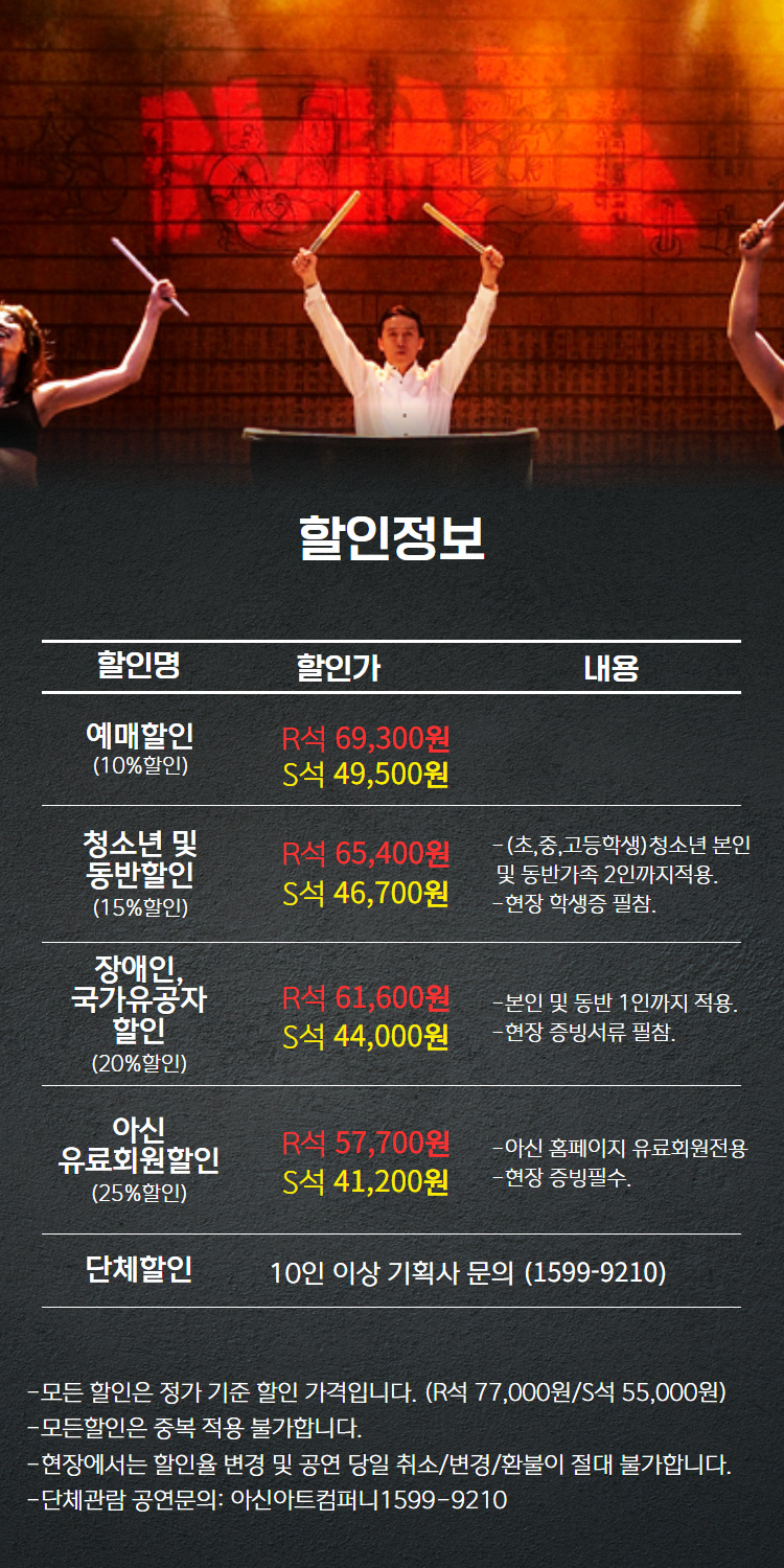 티켓가격 R석(1F) 77,000원 / S석(2F) 55,000원